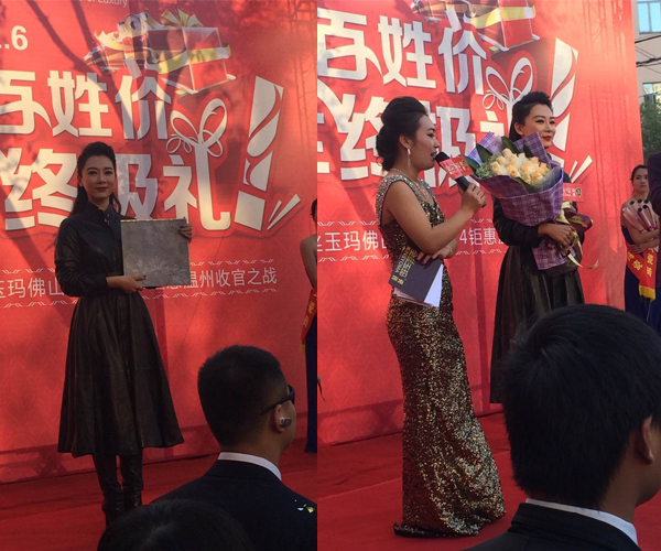 當(dāng)天下午,電視劇女王陳數(shù)以一襲黑色長裙驚艷亮相,舉手投足間盡顯十足女王范!引來粉絲團瘋狂追逐吶喊!陳數(shù)優(yōu)雅回應(yīng)現(xiàn)場觀眾的熱情并親切問候大家,隨后其手持金絲玉瑪產(chǎn)品向臺下觀眾大方展示,耀眼的產(chǎn)品與高貴的女王共同演繹著頂級奢華風(fēng)!